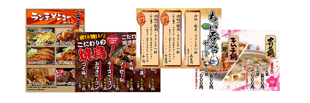 古くなってしまったお店のメニューや新しくお店を出したいのにメニューや一品物のポップをどうすればいいのかお困りの方は